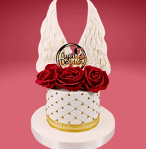 Melek Kanatlı Kırmızı Güllü Pasta.